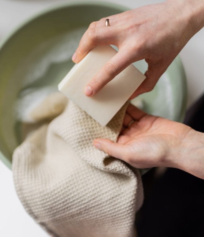 - Tørk av alle såperester med en våt klut med en gang etter påføring